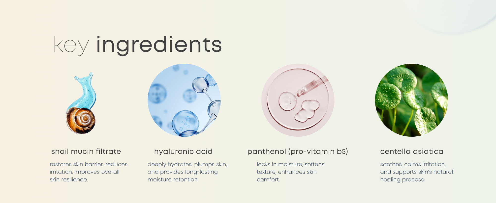 Snail mucin helps reinforce the skin’s protective layer so it can stay resilient and balanced.